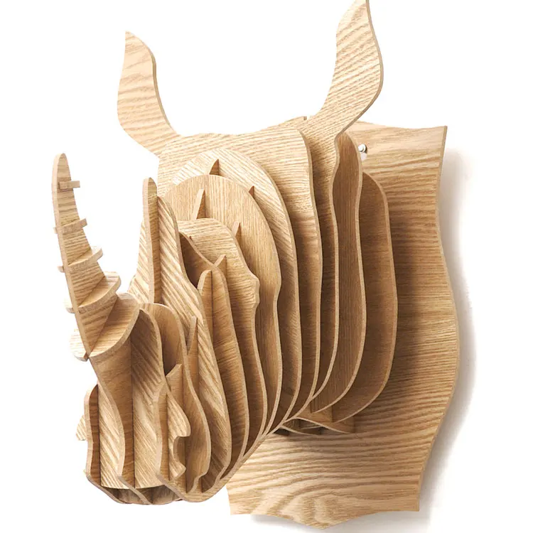 3D Puzzle Wooden DIY Creative Rhinoceros Head Wall-mounted Wood Gift Craft Home Decoration Murals N