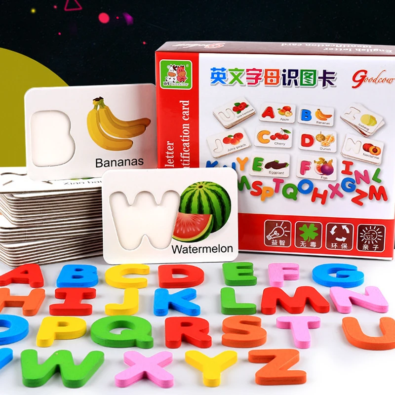 Wooden Early Education Baby Learning ABC Alphabet Letter Cards Cognitive Educational Toys for Kids
