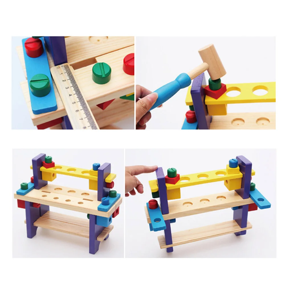 Early Kids Tool Set Pounding Bench Wooden Toy multi-function Screw Nut Assembled Construction puzzl