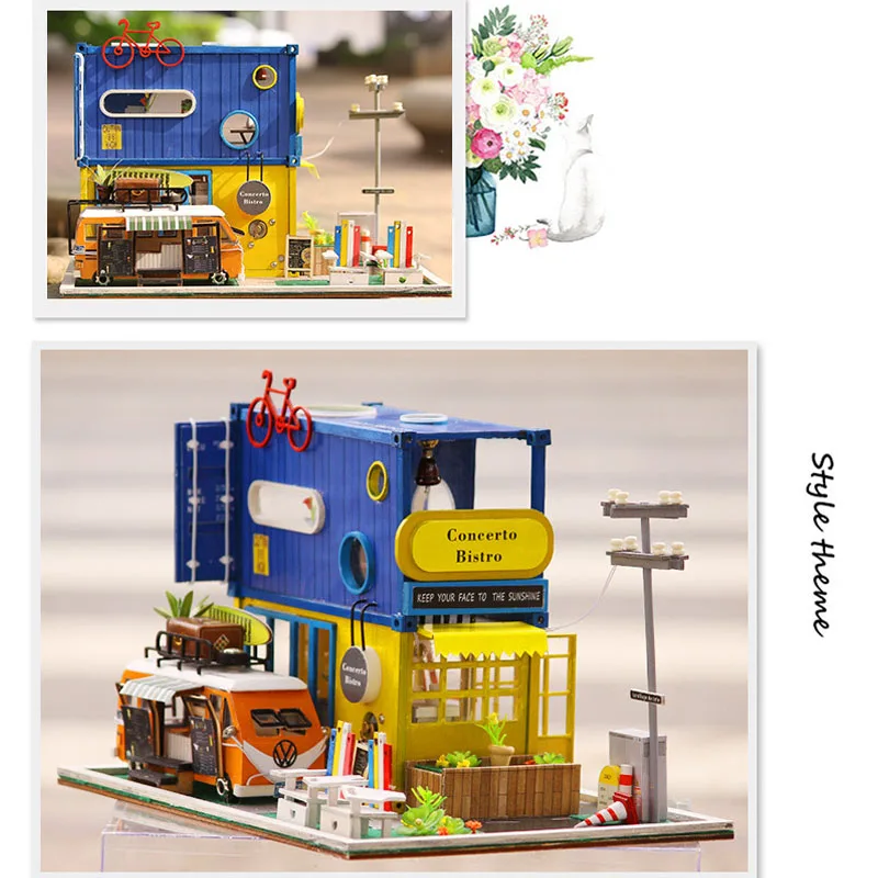 REVIEW TOP SELLER Miniature Container Bistro Dining Car Dollhouse Wooden Puzzle Model Furniture Kits Dolls House Led