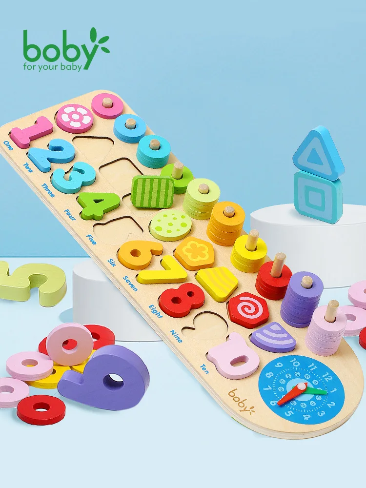 Young CHILDREN'S Puzzles Building Blocks Three-in-One Numbers Board 2 with Numbers Shape Cognitive